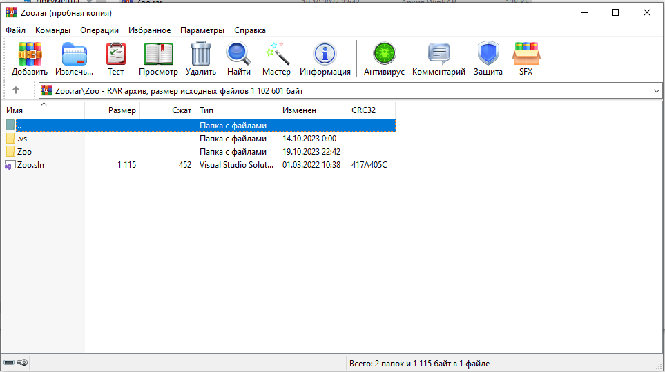 Чтобы запустить программу можно ничего не устанавливать, файл находится в папке Zoo/bin/debug/Zoo.exe