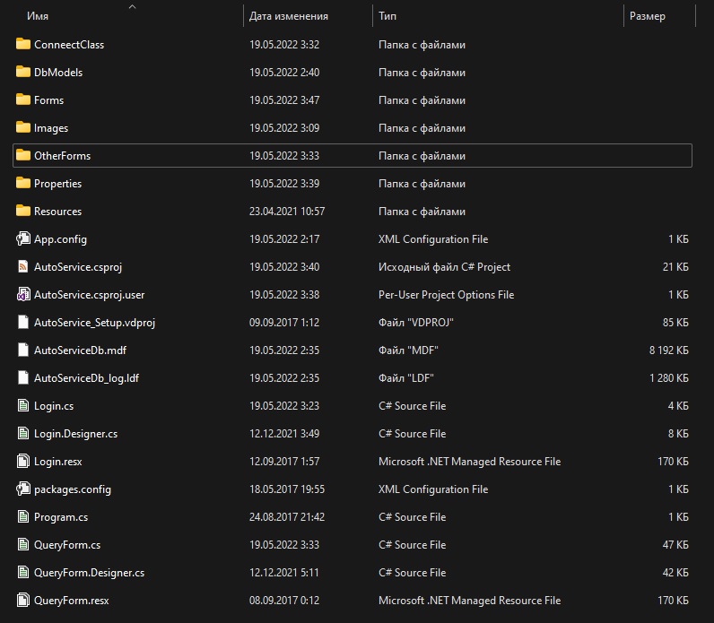 - Проект программы на языке C# в Visual Studio со всеми исходниками;