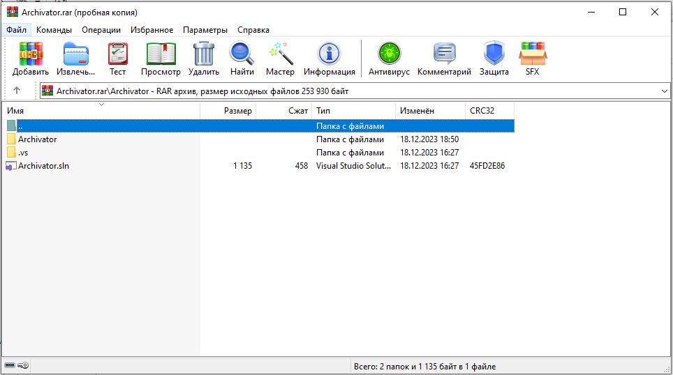 Скриншот архива с проектом