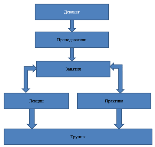 Работа системы заключается в следующем. Декан может просматривать преподавателей, удалять и добавлять их в базу, просматривать список учебных групп и студентов, руководить распределением учебной нагрузкой, просматривать результаты сессии.