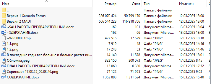 Скриншот архива с проектом