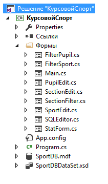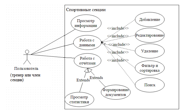 База данных была разработана для учета видов спорта, секций, членов секций.