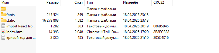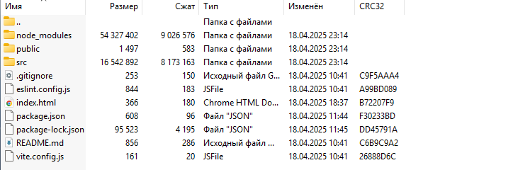 Скриншот архива с проектом