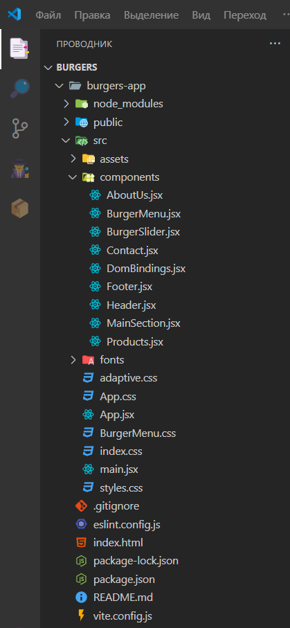 Скачать и установить Visual Studio Code со всеми необходимыми расширениями. Установить Node.js Запустить проект. Для этого открываем папку burgers - cd burgers-app - npm run dev. Все довольно просто.