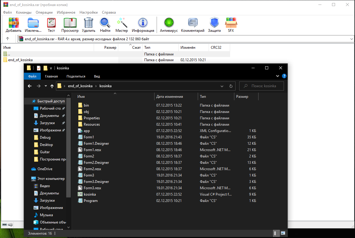 Скриншот архива с проектом: