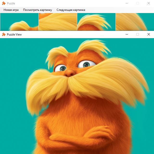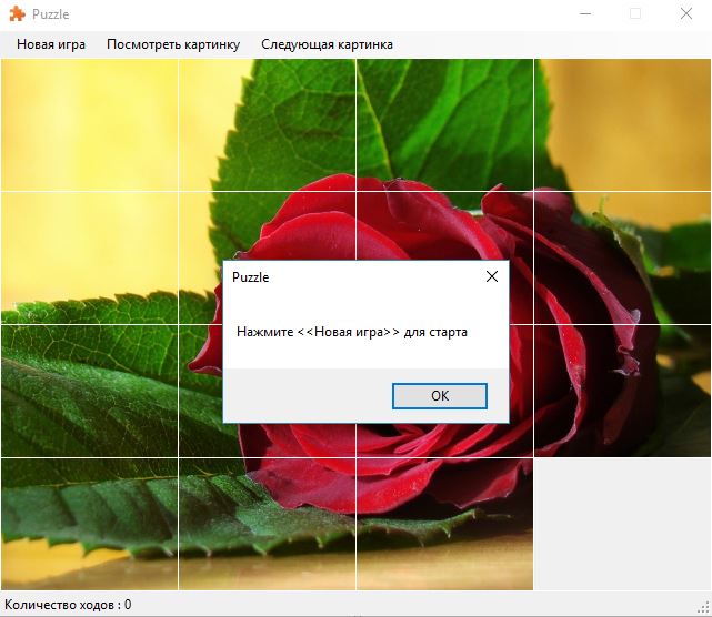 - В игре реализована возможность просмотра исходной картинки, для того чтобы было понятно какую картинку нужно собрать: