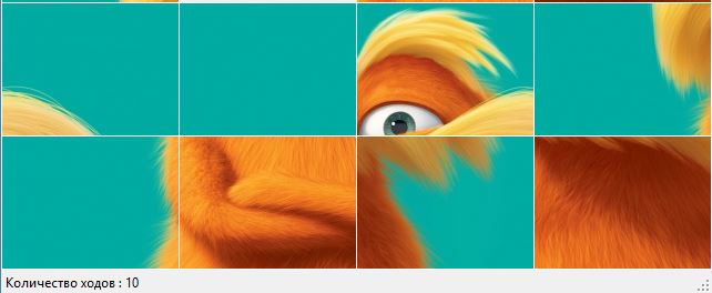 - После нажатия кнопки "Новая игра", алгоритм разрезает целую картинки на отдельные части и перемешивает их: