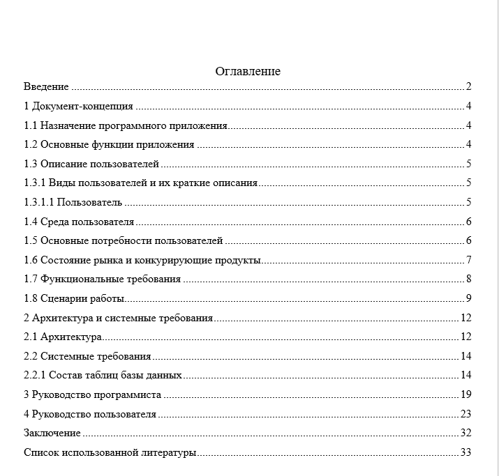 Содержание отчета к программе