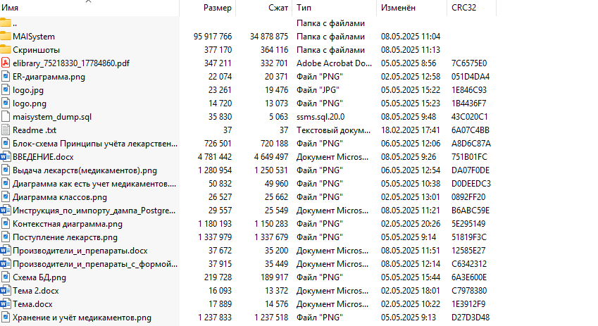 Скриншот архива с проектом
