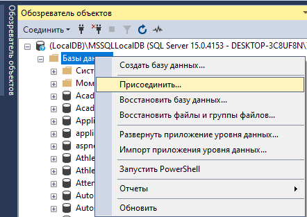 - Имя сервера должно быть таким - (LocalDB)\MSSQLLocalDB