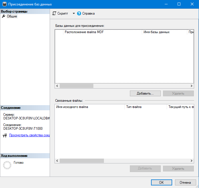 - Жмете добавить. Откроется еще одно окно как на рисунке. Тут вам нужно выбрать файл базы данных с расширением mdf. Файлы базы данных приложены.