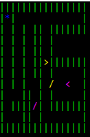 Мы начинаем играть за синего жучка которому надо выбраться из лабиринта через фиолетовую дверь. Но для этого нам надо сначала взять фиолетовый ключ. А чтобы взять фиолетовый ключ нам надо натыкнуться на желтый ключ открыть им желтую дверь а затем взять фиолетовый ключ и выбраться из лабиринта через последнюю дверцу.(Можно менять цвета всех элементов!!!) (Можно менять вид самих элементов например вместо жучка можно поставить "+" и т.д.