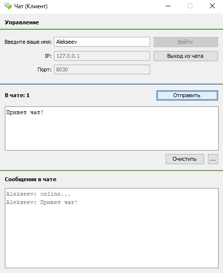 2. Клиент - можем подключиться к серверу под любым IP и портом. Ввести имя и писать в чат сообщения!