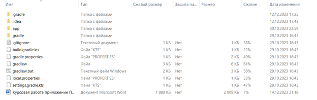 Скриншот архива с проектом