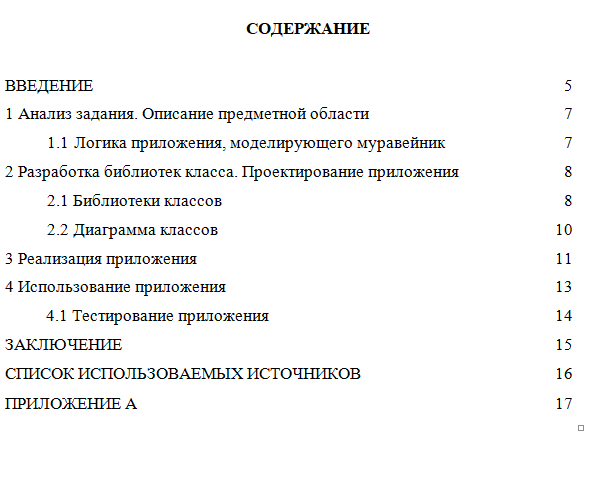 Содержание отчета к курсовой работе