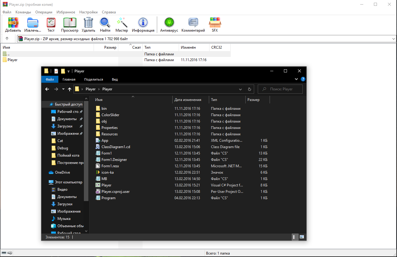 Скриншот архива с проектом: