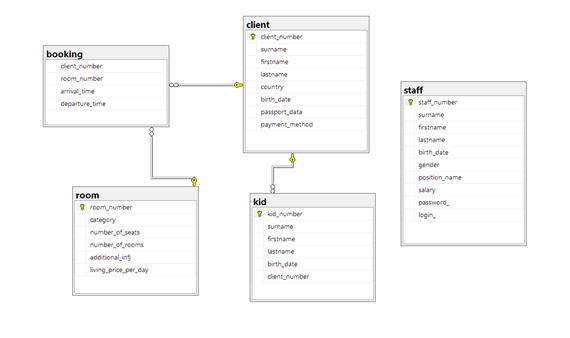 В целях ускорения и повышения работы гостиницы была поставлена задача разработки новой системы учета и контроля работы гостиницы, а именно: процесс бронирования номеров, регистрация и обслуживание посетителей, хранение информации о сотрудниках и номерах.