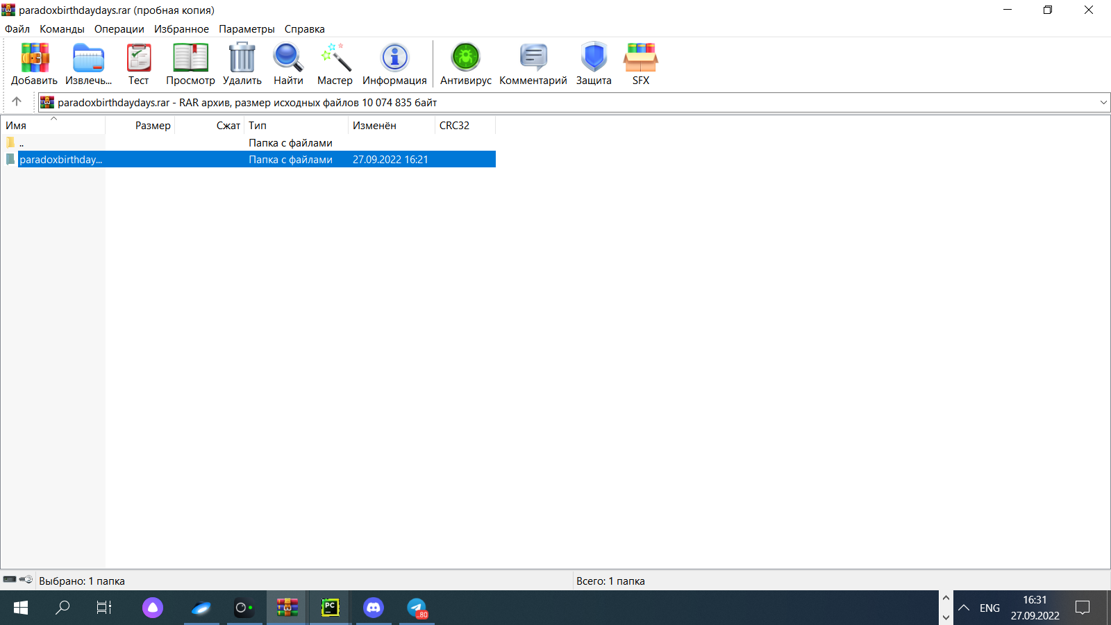 Папка с проектом paradoxbirthdaydays в PyCharm.