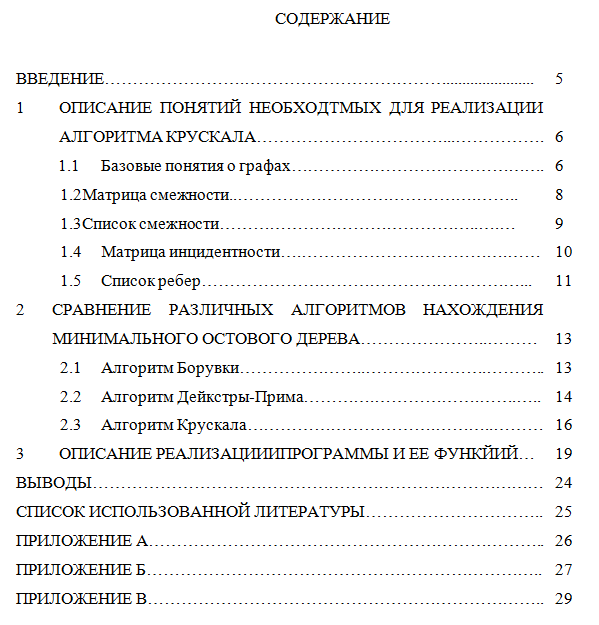 Также был проанализирован Алгоритм Крускала, приведен и описан пример работы данного алгоритма. Помимо этого, были объяснены принципы работ других похожих алгоритмов, таких как алгоритм Борувки и алгоритм Прима, и к ним также приведены примеры. После этого, было описано основное отличие алгоритма Крускала от других, которая заключается в решении задачи пересекающихся множеств.