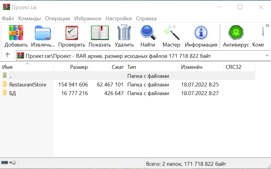 Скриншот архива с проектом