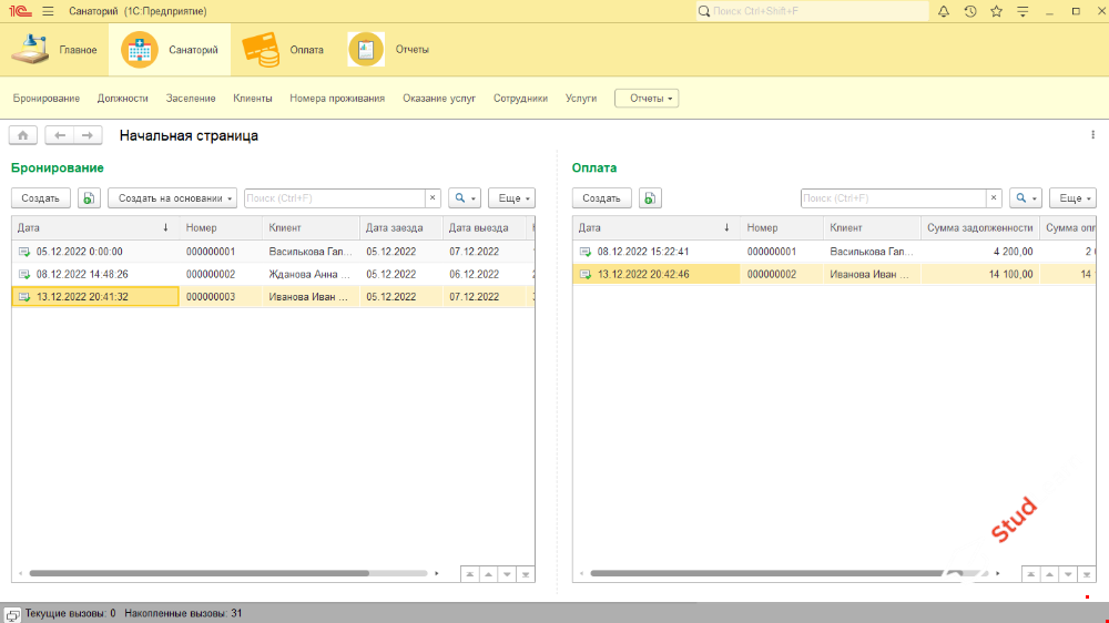 - 1.3 Программное обеспечение фирмы 1С-Санаторий 4