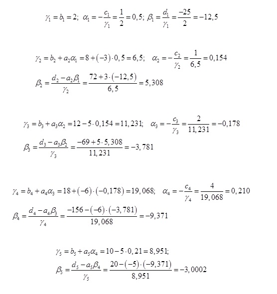 Система линейных алгебраических уравнений методом прогонки.(5 неизвестных)
