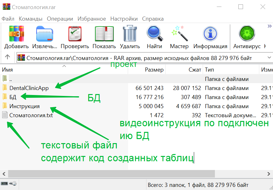 Скриншот архива с проектом