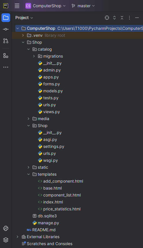 Разработать приложение Django для учета компьютерных комплектующих: разработайте простое приложение используюя Django для учета компьютерных комплектующих. Приложение должно позволять добюавлять, удалять и изменять данные, выводить сведения о ценах, давать возможность искать товар-комплектующее по наименованию, а также позволять пользователю зарегистрироваться в приложении.