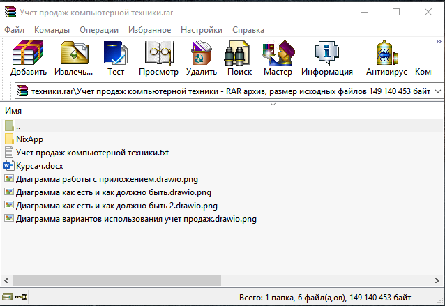 Скриншот архива с проектом