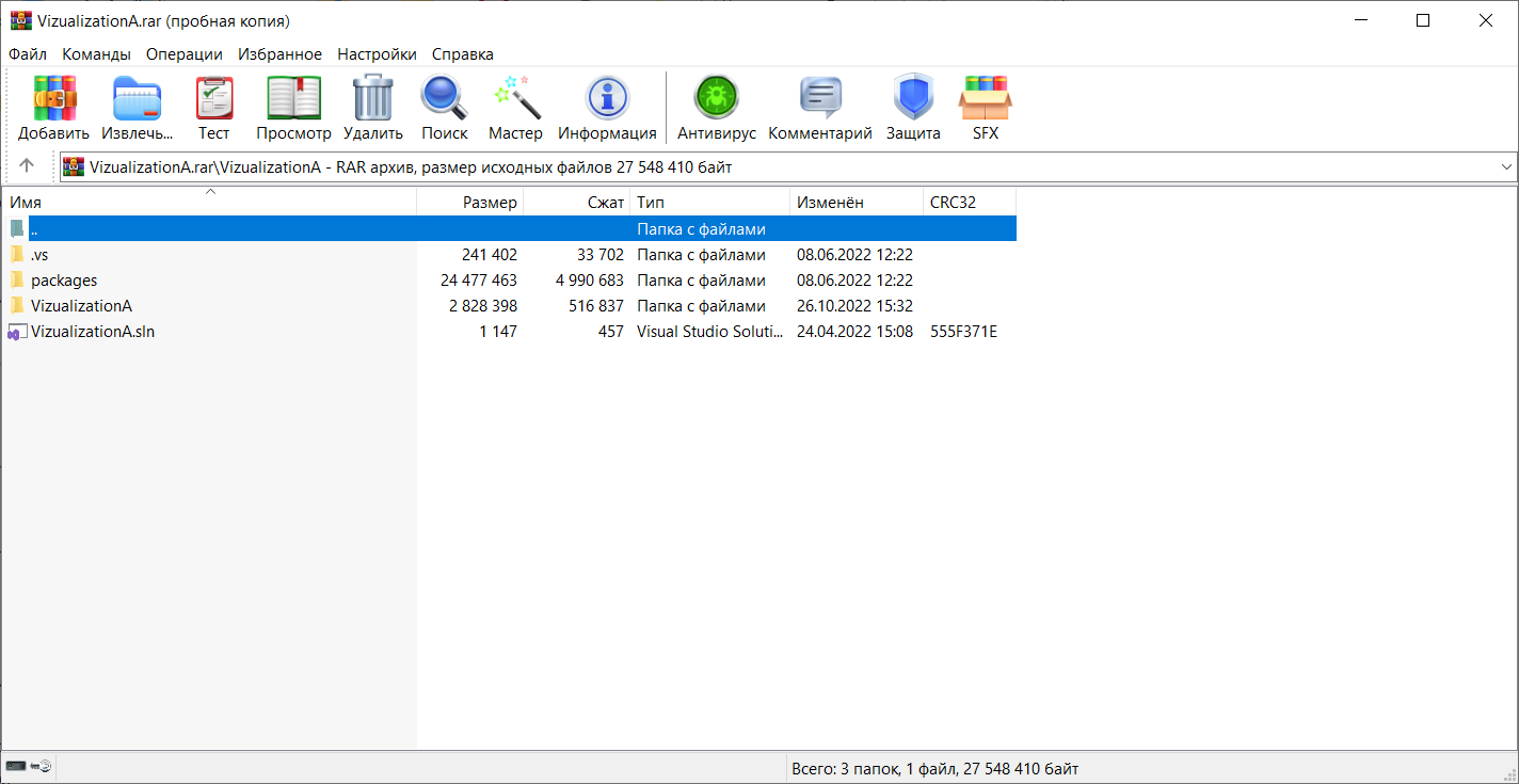 Программа не нуждается в установке. Просто необходимо запустить VizualizationA.sln